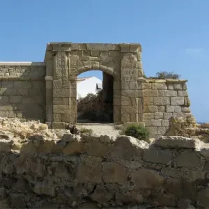 Nada más bajar en el puerto, se divisa la entrada al pueblo amurallado y la Puerta de Levante o de San Rafael.